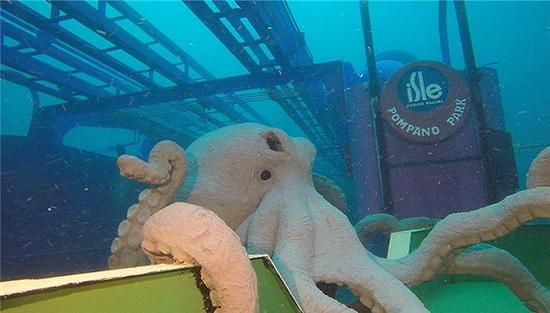7月23日,美国佛罗里达州一个全新的艺术展览正式对外开放。该展览是世界上第一个水下艺术展,你如果想要观看展览,就需要潜游到水面下。展品皆布置在一艘名为Lady Luck的沉船上。运营商希望通过这种形式来吸引成千上万的潜泳爱好者。