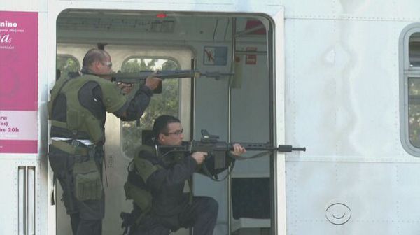 在奥运会开幕之前,巴西进行防恐演习,在满是游客的里约地铁站模拟枪击事件。里约机场陆陆续续迎来各国运动员和观光游客,机场内站岗士兵随身携带自动武器。