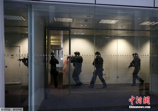 资料图:英国伦敦警察在当地一家购物中心内参加反恐演习,应对可能的恐怖袭击。