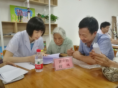 仪式结束后,医卫服务团的各位专家在春晖社区邻里服务中心开展了送医下基层免费义诊活动。医卫服务团常务副团长、省中医院泌尿科副主任医师姚克勤,省中医院副主任中医师陶茂灿,省中医院全科医学科主任、副主任中医师陈瑜,省医学科学院研究员、省委会直属医科院支部主委杨华,省人民医院泌尿男科主任医师朱岳华,浙江大学医学院附属邵逸夫医院骨科副主任医师杨明,德清县人民医院肾内科主任、主任医师何婕等专家为当地百余名群众进行了义诊,义诊过程中,队员们仔细询问村民的身体情况,并根据他们所患疾病进行详细讲解,包括疾病的病因、临床表现、治疗手段等。