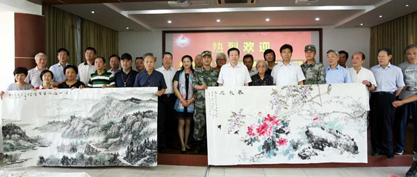 “八一”建军节来临之际,民进苏州市委会组织部分书画家赴光福73676部队,开展书画拥军活动。书画家们积极报名,踊跃参与。耄耋老人、著名画家张继馨,原民进苏州市委会副主委、原国画院院长周矩敏,苏州市美协秘书长陈危冰、江苏省书协美术委员葛鸿帧等,都纷纷要求赴部队慰问,炎炎烈日也挡不住苏州民进人对人民子弟兵的真情与热忱。