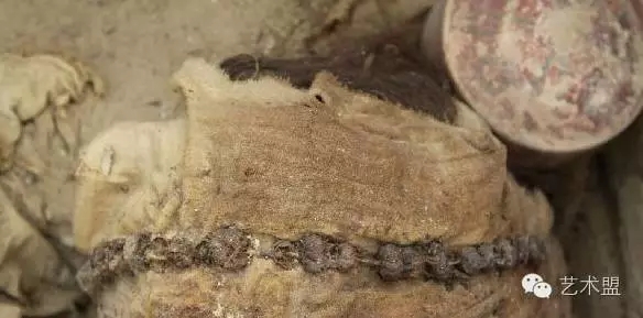另有数十具尸体面部佩戴着一种护颌罩,形状很像今天人们外出戴的“口罩”,但是,这些“口罩”却没戴在嘴上,而是托在下巴上,用一根带子在头顶处系好。“口罩”的用料也是有刺绣、布料等。