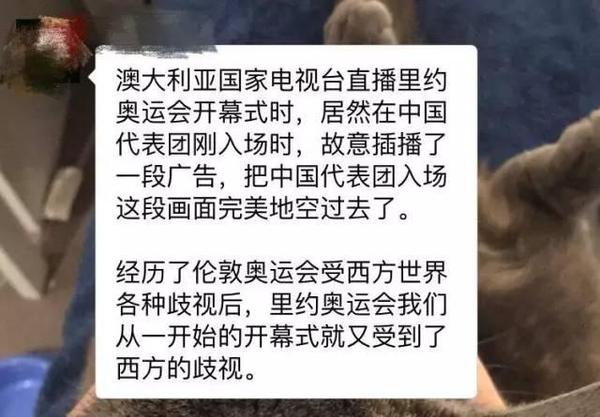 针对于中国队入场被澳媒强行切断,而放入广告,网上产生了一个专门的讨论: