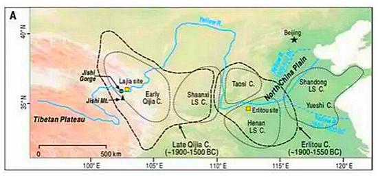积石峡下游约2500公里处的二里头遗址同样可以被追溯到公元前1900年,一直被视为夏朝可能的首都,但与所有和夏代有关的学术讨论一样,考古学家们没有找到任何支撑这一猜测的直接证据。