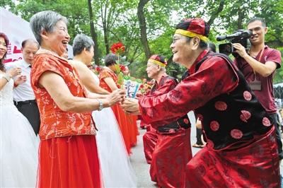 七夕77对金婚银婚夫妻广州白云山共敲幸福锣(图)