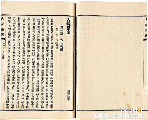 赵汝珍《古玩指南》于民国三十一年(1942年)九月首次刊行,五百部仅月余便销售一空,又再次印刷。这部古玩研究的专著近二十余万字,是赵汝珍在多年收 集古玩中积累和见闻的古玩鉴定收藏经验的归纳总结,包含的范围之广、门类之众,可谓前所未有,有“文玩小百科”之誉。