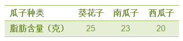 瓜子虽小,营养却丰富,我们切不可忽视它的“长胖”功力。虽然说“吃瓜子等于喝油”有点夸张,但是,瓜子的脂肪含量确实很高,适量永远是平衡的最高法则。超市购买的瓜子包装上都带有脂肪含量,建议您参考上图的科学摄入量,给自己来个一周瓜子的限量,将吃瓜子也列入计划!