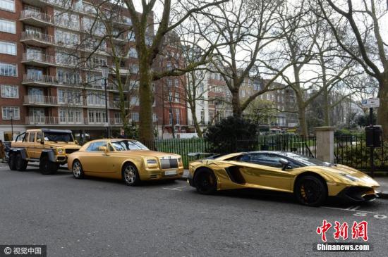 沙特亿万富翁将自己价值千万的豪车运往英国伦敦,只是为了在度假期间方便出行,顺便炫耀自己的豪车。图片来源:视觉中国