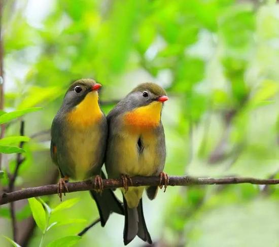 相思鸟(Silver-eared Mesia 学名:Leiothrix)别名红嘴玉、红嘴绿观音、恋鸟,在西方叫“乃丁格”(情鸟)?;伎葡嗨寄竦牧街帜裰?,栖息于平原及海拔1000米的小丘,活动于常绿阔叶林、灌丛和竹丛间,对影相思。红嘴相思鸟羽衣华丽、动作活泼、姿态优美、鸣声悦耳,颇受人们喜爱。但其鸣啭与其它画眉亚科歌鸟相比,显得单调,也不善模仿,所以养鸟者多重其羽色。相思鸟本属共有银耳相思鸟和红嘴相思鸟2种,中国均有分布,留居在长江流域以及江南广大地区,两种外形相似。