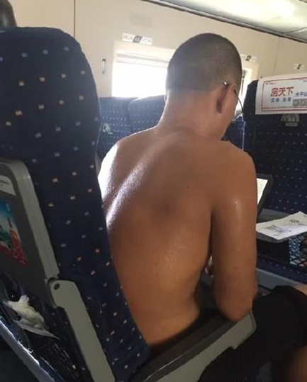 乘客被焖车厢两小时,光着膀子还不停流汗。