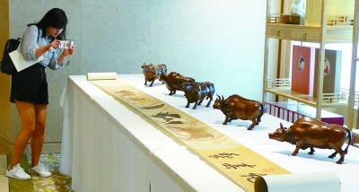 以《五牛图》中牛的元素设计制作的铜牛文创产品。
