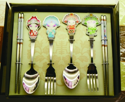 戏曲设计风格的餐具。