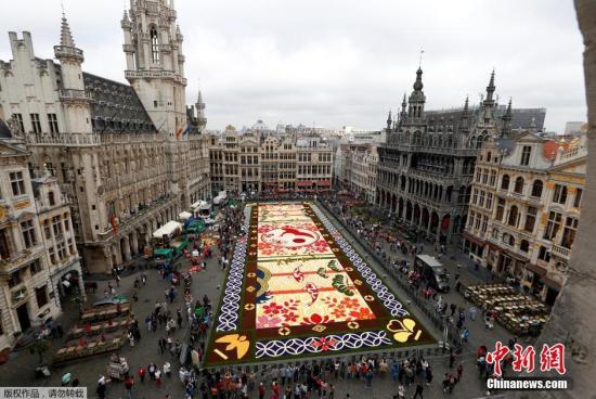 中新网8月15日电 据外媒报道,日前,比利时首都布鲁塞尔市中心的大广场上出现了一张巨大的“花毯”。 比利时是鲜花种植大国,当地很多地方也常有以鲜花为主题的活动,其中以每逢双数年举办的布鲁塞尔大广场鲜花地毯最出名、规模最大。