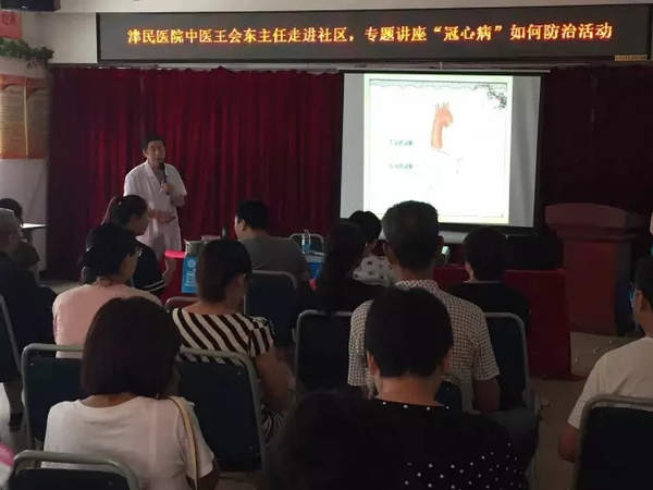 2016年8月12日上午,农工党河东区委会与津民医院联合在和睦西里社区服务中心开展环境与健康宣传活动?;疃校蛑猩矫沤?5名社区群众赠送价值7万余元的大礼包,包括绿豆、白糖、驱蚊水、藿香正气水等防暑降温用品和价值千元的“爱心医疗基金卡”;津民医院中医科主任王会东还为社区群众作了题为“冠心病防治”的讲座;来自内科、中医科、除痛科、妇科、外科等科室的医生免费为群众量血压、测血糖和进行医疗咨询;为社区群众发放了主题为“?;ずQ?、爱护环境”的宣传册和纪念手袋。
