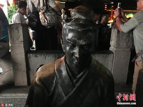 8月18日,南京夫子庙历史人文荟萃,是蜚声海外的旅游胜地,一年接待游客有数亿之多。通过放置在大照壁和江南京贡院前古代文人铜像外观就可以看出,夫子庙的人气有多旺盛?雕像的肩、手和笔被摸的油光发亮,金黄色的铜和黑色的铜锈产生明显的反差。