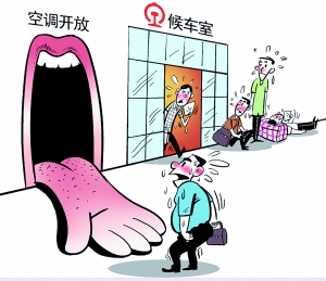 炎炎夏日暑气灼人,“火炉城市”长沙室外气温午时达36℃以上,候车室作为人流密度不小的相对封闭空间,更是分分钟要闷死人的节奏。按理说,火车站是大型公共场所,也是城市文明窗口,用空调为旅客降温,是其应有的基本公共服务??沙ど郴鸪嫡救慈纹胀ê虺凳衣每秃谷缬晗?,就是不开空调,这不啻为公共服务“中暑”。