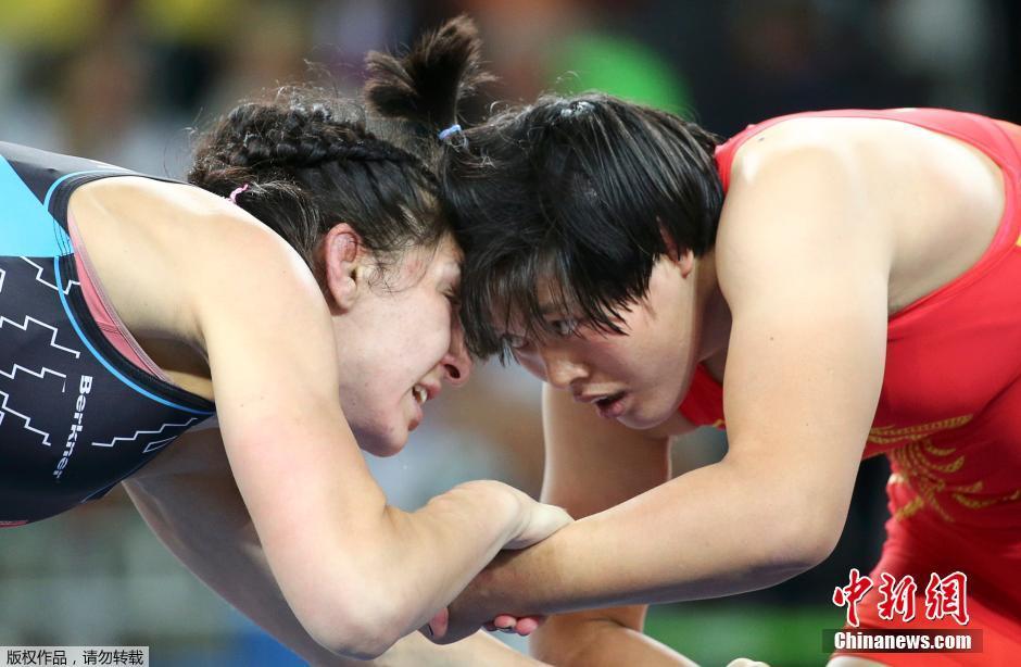 当地时间8月18日,2016里约奥运会摔跤女子自由式75公斤级铜牌争夺战中,中国选手张凤柳(红)8:4战胜白俄罗斯选手马扎柳克,获得一枚铜牌。