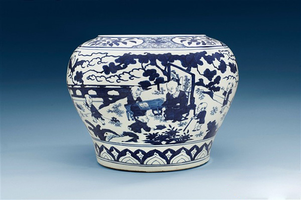 嘉靖朝器物虽制作较粗糙,但瓷器制作水平取得了不小成就。在这里必须要提及的是明嘉靖“大龙缸”,大龙缸是皇宫的专用品,一是用来养鱼观赏,二是放置在宫中盛水防火的。嘉靖朝大龙缸瓷质坚硬,胎体厚重,釉质肥厚,使用回青料绘画。由于龙缸器形巨大,制作技术复杂,烧制十分困难,当时有十窑九不成之说。明人王世懋《窥天外乘》载:“嘉靖间……上忽命烧大缸,围至六尺,所用土料青料既多,比入火,十无二三完好者,做是为虚费甚巨,而人莫教言”。到明万历时期已经烧制不出这种大龙缸,万历随葬的青花龙缸,也只好用他祖父嘉靖年间制造的了。