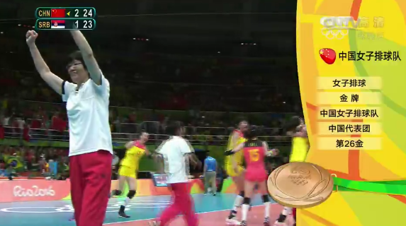 北京时间8月21日,在里约奥运会女排决赛中,中国队战胜塞尔维亚队获得金牌。
