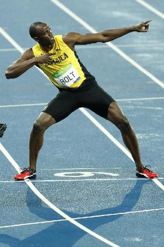 8月18日,博尔特庆祝夺冠。 当日,在2016年里约奥运会田径男子200米决赛中,牙买加选手博尔特以19秒78的成绩夺冠。新华社记者丁旭摄