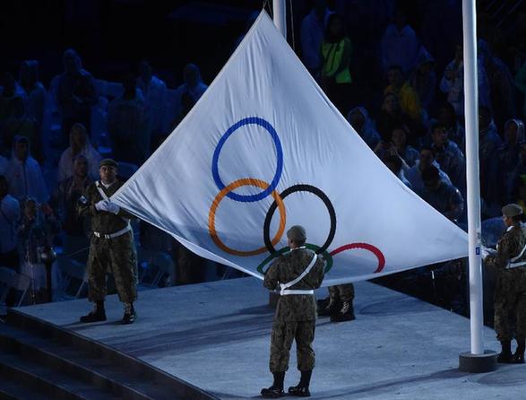 8月21日,第31届夏季奥林匹克运动会闭幕式在巴西里约热内卢马拉卡纳体育场举行。 这是奥林匹克会旗在闭幕式上落下。 新华社记者岳月伟摄