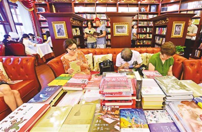 8月18日,市民在书店阅读书籍。
