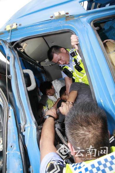 车祸司机被困 交警固定姿势1个多小时救人(图)
