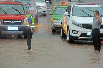 20岁美女协警光脚站积水中指挥交通成网红(图)