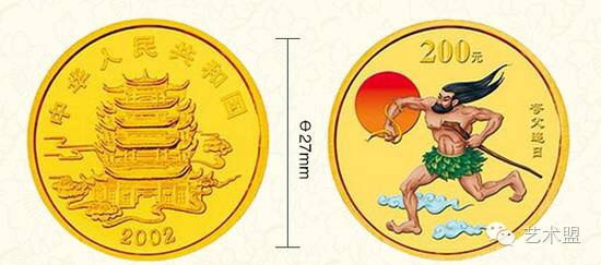 中国民间神话故事彩色纪念金币-夸父追日 2002年中国人民银行发行