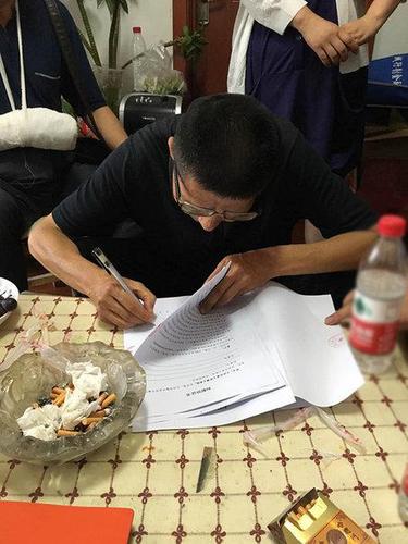 刘伶利的父亲在签赔偿协议。