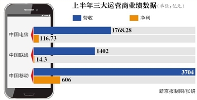 2015年上半年,中国电信营收1649.5亿元,同比下降0.6%;股东应占净利润为109.8亿元,同比下降4.0%。