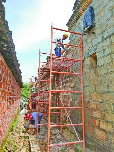 专业抢修队正在按照原始风格抢修江西省抚州市金溪县村民胡庆祥的古宅。邓兴东摄/光明图片