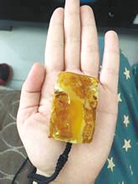 琥珀吧网友告诉记者,水煮蜜蜡最大的破绽在气泡上。大部分水煮蜜蜡可以观察到密集的小气泡,而且越往中心处气泡相对越小。密集的小气泡即为水煮蜜蜡重要的特征。