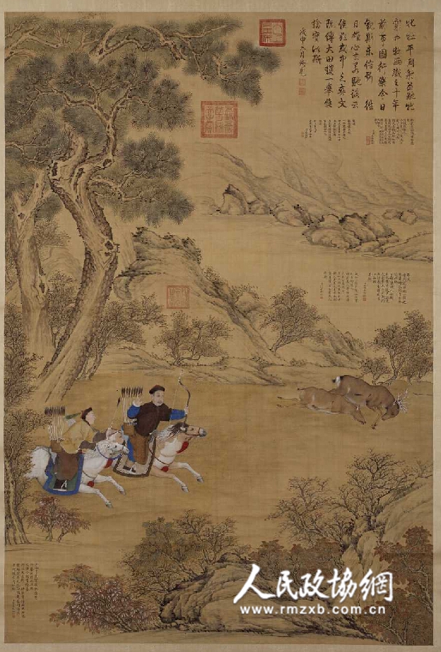《明宣宗射猎图》轴(局部) 明