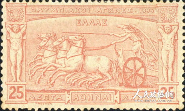 第一届现代奥运会于1896年4月6日至15日在希腊首都雅典举行。为此,东道国在希腊邮协萨科拉弗斯的建议下,率先发行世界第一套奥运会邮票,成为奥运邮票的开山之作。
