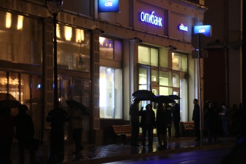 事发后,警方立即封锁事发地点,事发路段交通中断。俄内务部长科洛科利采夫和特种部队立即赶到现场,身穿防弹背心的警察守在该银行入口处,狙击手就位,消防车和救护车在现场待命。