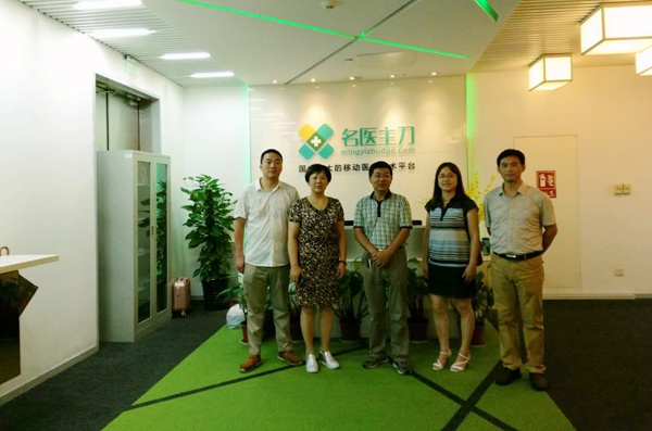 “名医主刀”是国内最大的移动网络手术平台,目前平均每月完成预约手术已经突破5000台,三级甲等医院副主任及以上名医入住超过30000人。调研期间,课题组参观了“名医主刀”总部。工作人员介绍了公司发展的基本状况以及互联网+医疗的基本运行模式?!懊街鞯丁贝词既思鍯EO苏舒热情接待了课题组一行,并和课题组成员进行了广泛深入的交流??翁庾楸硎荆ü餮?,对互联网+医疗促进分级诊疗的路径、意义、发展趋势以及存在的困难等有了进一步的认识。下一步,他们将发挥专委会集体优势,及时完成调研报告,形成调研成果。