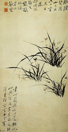 郑板桥被后人誉为“诗、书、画”三绝的全才画家。他的诗有杜甫的遗风,关心民间疾苦,重在表现社会现实。其书法融黄庭坚、苏东坡之体,掺篆隶楷行诸体并杂以兰竹笔画入书,大小参差,乱石铺街,标新立异,既有峻峭纵横之雄,又有潇洒秀丽之韵,人称“六分半书”。清何绍基评板桥书“板桥字仿山谷,间以兰竹意致,尤为别趣。”以绘画笔法入书,古亦有之,但像板桥出神入化者无二也。他的绘画成就最高,尤擅画竹石,细枝粗叶,瘦劲孤高,格调超人。所画之兰突出山间野气,用笔秀逸,幽香扑人。
