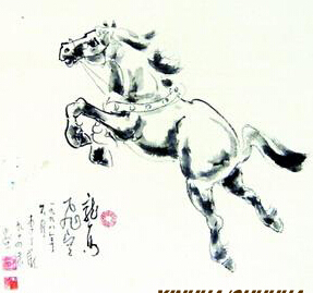 此画,李丁陇先生以草书用笔挥写而成,真乃天马行空之势,把龙马精神表现得淋漓尽致。