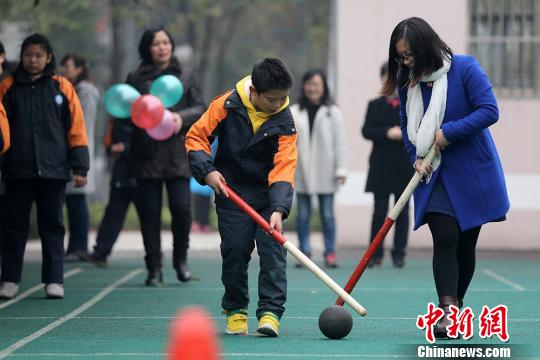 资料图:孩子们参加趣味游戏。泱波摄