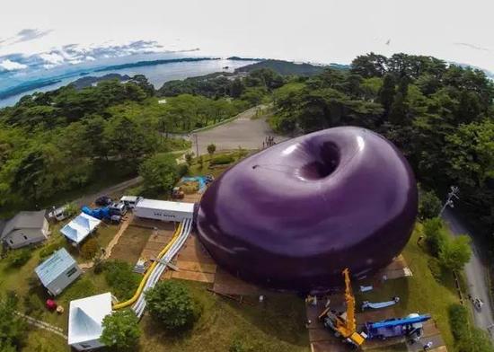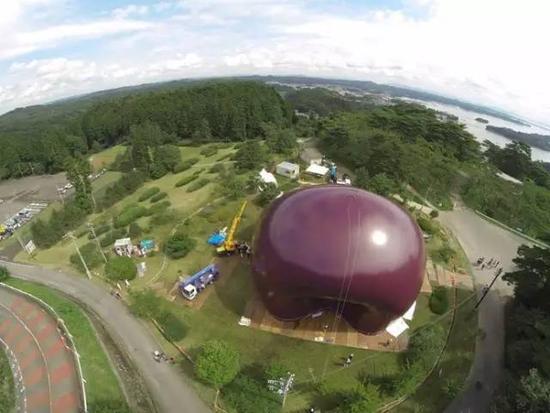 在日本东北部宫城县松岛镇的公园出现了一个巨大紫色充气球。