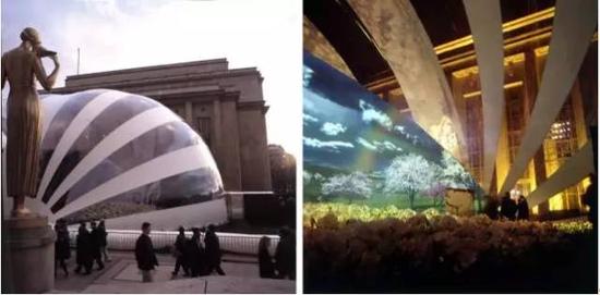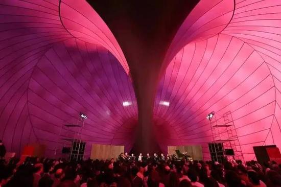 一位艺术家和日本著名建筑设计师矶崎新共同创造了这个可移动的充气音乐厅,它有个耐人寻味的名字:Ark Nova——“新方舟”,这个名字寓意为人类面对灾难时的希望。这位印度裔英国艺术家叫Anish Kapoor(安尼施·卡普尔), 他常常在简洁曲形造型上饰以鲜艳的色彩并融合东西方的艺术气质,这使他成为一位备受世界瞩目的艺术家。