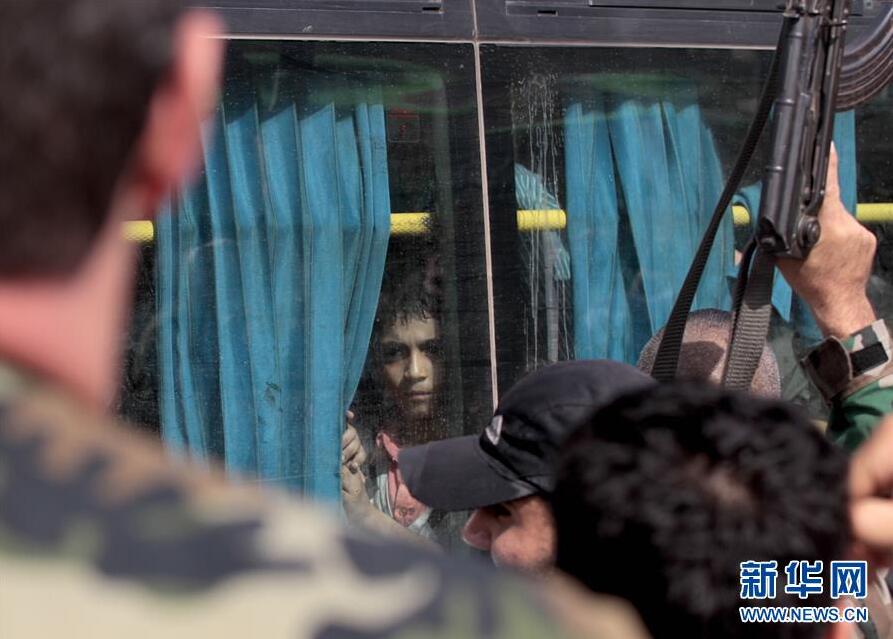 8月26日,在叙利亚大马士革农村省达拉亚市,一名正在撤离的男孩望向车窗外。