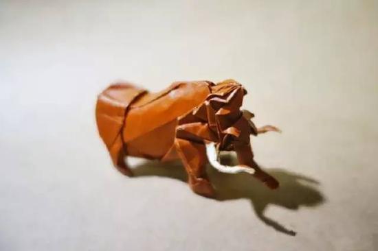 偶然间还读到了一本国外杂志,其中有一篇讲的是现代折纸,一张简单的白纸,不经过任何裁剪、粘贴、加工,仅凭一双手反复地折叠,就能折出造型相当复杂的动物。