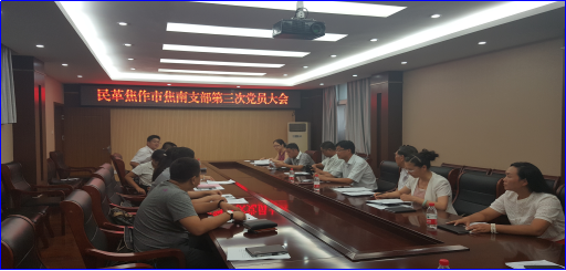 8月19日,民革焦作市委会焦南支部召开党员大会?;嵋檠【俨私鼓现Р啃乱唤煳被?,刘敏当选为支部主委,桑士伟当选为支部副主委,侯珺劼、董铁军、李庆当选为支部委员。民革焦作市委会主委薛志杰、专职副主委景国红、秘书长赵秀丽参加了会议。