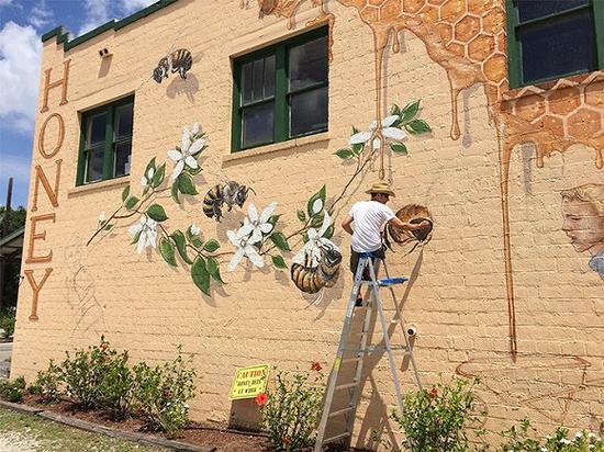 截至如今,Willey已经完成了七幅蜜蜂壁画,其中包括美国小蜜蜂护肤品公司(Burt’s Bees)总部墙上的一副巨型作品。同时,每完成一幅壁画,这位艺术家都会详细记下自己画出的蜜蜂数目,并公布在“The Good of the Hive”活动官网上。
