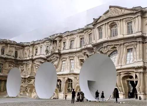 Dior秀场总是利用艺术装置营造摩登气息,今年他们在卢浮宫打造了一个迷人的未来十足的隐形空间。外墙体全部铺面镜面,整个秀场仿佛是一个不存在的空间,隐藏在了卢浮宫面前。现场,天空和建筑的镜像与具象接合又有轻微的扭曲。让人不禁想起特纳奖获得者安尼施·卡普尔(Anish Kapoor)那些凹凸和图像的反射将人的感受引领到另外一个层次的装置,当装置的表面与周围景象兼收并蓄之后,产生出了一种超然的力量或超常的状态,这也是对另外一个层次的空间和观念的延伸——就像秀场从两个巨大的圆形入口走进内部的设计。而内部红色和金属银色的装饰也极具未来感,平行排列的多层圆形壁板又是带人进入层层透视感。整个秀场的设计就仿佛是再次进入艺术家的作品里,非常符合秀场借由作品展示给我们的那样:在这个世界找到一条缝隙,用明暗、凹凸、反射、颜色等暗示,进行一场现象和精神之间的对话。同时,这也是艺术与时尚的一次对话,模特的高冷跟卡普尔作品中超然意向的统一,似乎很有看头很加分。