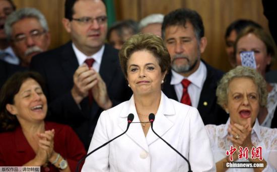资料图:当地时间2016年5月12日,巴西巴西利亚,总统罗塞夫在参议院通过弹劾报告后发表讲话。