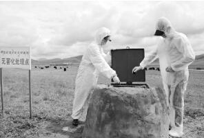 防疫人员对病畜内脏进行无害化处理。