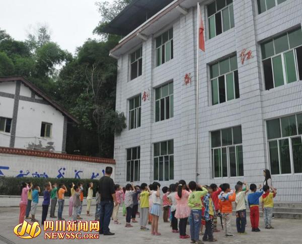 宝塔村小位于开江县普安镇宝塔社区。这里因明朝建有宝泉塔而得名,素有“鱼米之乡”美誉。9月1日上午,四川新闻网记者刚走到宝塔村小操场,正看见这里的孩子们在举行升国旗唱国歌仪式。